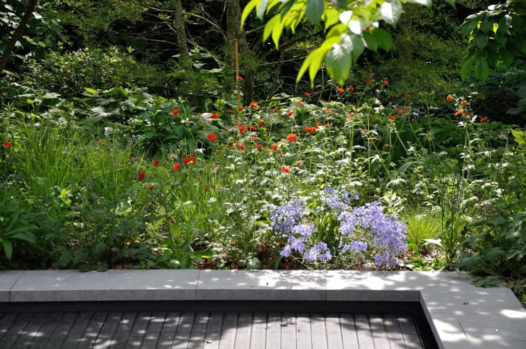 De tuin op een landgoed krijgt een belangrijke functie, namelijk het uitsluiten van inkijk van buitenaf. Er staat een appartementengebouw aan de oostzijde van de tuin. Hier komen enkele grote, wintergroene bomen van minstens 7 meter hoogte. Hiertussen komen dan weer meerdere soorten bladverliezende bomen en struiken. Er zal een interessante botanische diversiteit in de tuin komen. Het tuinontwerp is eenvoudig van opzet. Dat maakt de beleving niet minder. Met een zwembad en een firepit zijn er verschillende plekken gecreëerd. Ook de buitenkeuken aan de woning en de terrassen in de voortuin geven een mogelijkheid om van de totale oppervlakte te genieten. Het terrein is 2600 m² groot. Hierdoor is het mogelijk om uit te pakken met groen. Dit groen is helemaal rondom de villa gelegen. Onderhoud is hier ook een belangrijk item. Dat moet flexibel zijn waardoor er op momenten goed in de tuin gewerkt kan worden.