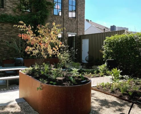 Om een hoogteverschil op te lossen, is Corten staal vaak de mooiste oplossing. Ook prijstechnisch, omdat de fabricage in de fabriek kan worden gedaan.