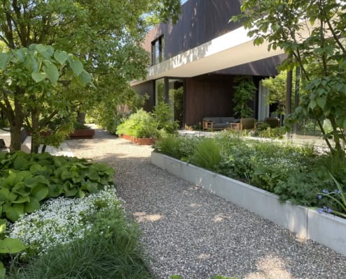 De projecten van Frank Heijligers Studio hebben een weelderige beplanting met vaste planten en siergrassen. Dit betekent niet dat de tuin een ‘rommeltje’ wordt, maar dat er vooral veel te beleven is. Van voorjaar tot voorjaar! Van het opkomende blad van bloembollen en vaste planten, tot de bloei en het zaad aan de planten. Het hele proces van groei is interessant en decoratief. Daarnaast trekken planten veel bijen, vlinders en insecten aan en daarmee dus veel biodiversiteit.